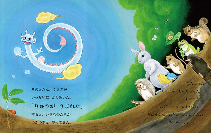 ぴっしゃんぽっしゃん 湧き出た ひとしずくから りゅうがうまれた”